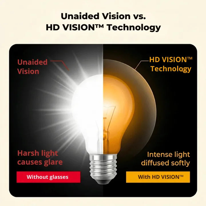 HD Vision™ lenses filter the 445–455nm blue wavelength spike emitted by modern LED headlights — the exact frequency that overwhelms your eyes at night. Your prescription corrects the shape of your eye. It doesn't filter light. That's why drivers who've updated their prescription still struggle. HD Vision™ fixes the problem your optician can't.
